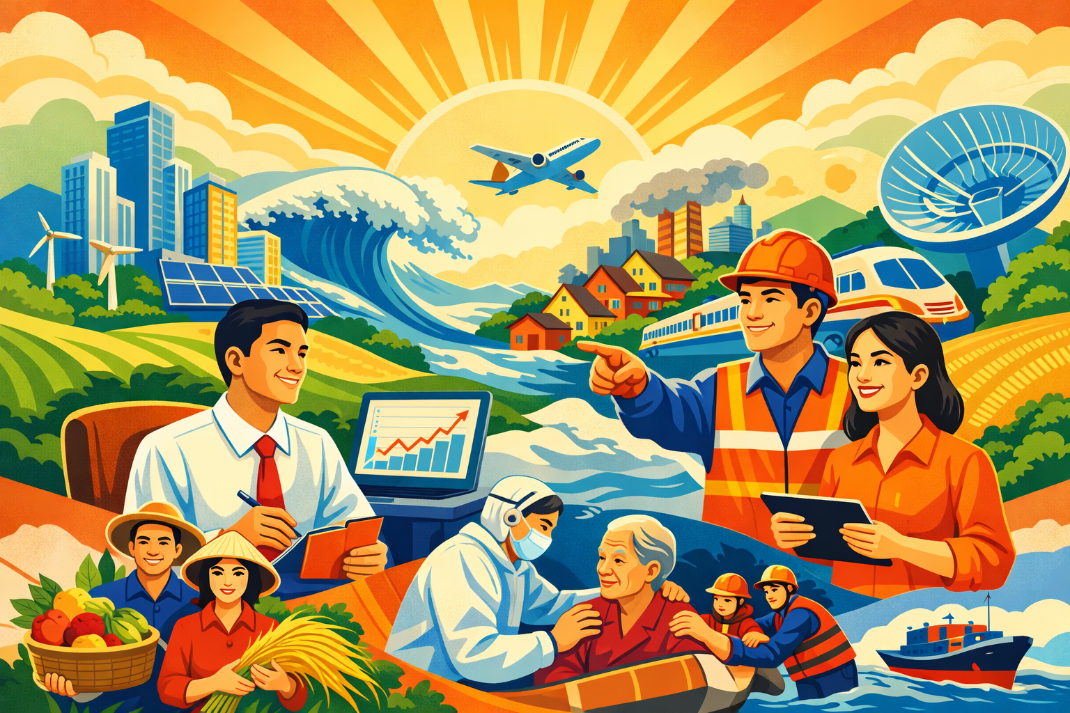 (1), (2), (5). Các nghị quyết, chỉ thị của Đảng: Nghị quyết số 18-NQ/TW ngày 25/10/2017 của Ban Chấp hành Trung ương Khóa XII một số vấn đề về tiếp tục đổi mới, sắp xếp tổ chức bộ máy của hệ thống chính trị tinh gọn, hoạt động hiệu lực, hiệu quả; Nghị quyết số 19-NQ/TW ngày 25/10/2017 của Ban Chấp hành Trung ương về tiếp tục đổi mới hệ thống tổ chức và quản lý, nâng cao chất lượng và hiệu quả hoạt động của các đơn vị sự nghiệp công lập; Nghị quyết số 68-NQ/TW ngày 4/5/2025 của Bộ Chính trị về Phát triển kinh tế tư nhân; Chỉ thị số 21-CT/TW của Ban Bí thư về tiếp tục đổi mới, phát triển và nâng cao chất lượng GDNN đến năm 2030, tầm nhìn đến năm 2045.