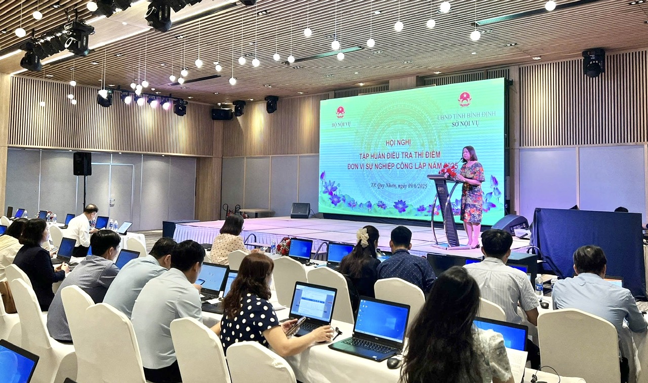 Sáng 09/6/2025, tại tỉnh Bình Định, Bộ Nội vụ tổ chức Hội nghị tập huấn điều tra thí điểm đơn vị sự nghiệp công lập năm 2025. Vụ trưởng Vụ Kế hoạch - Tài chính (Bộ Nội vụ) Nguyễn Thị Bích Thủy chủ trì Hội nghị.