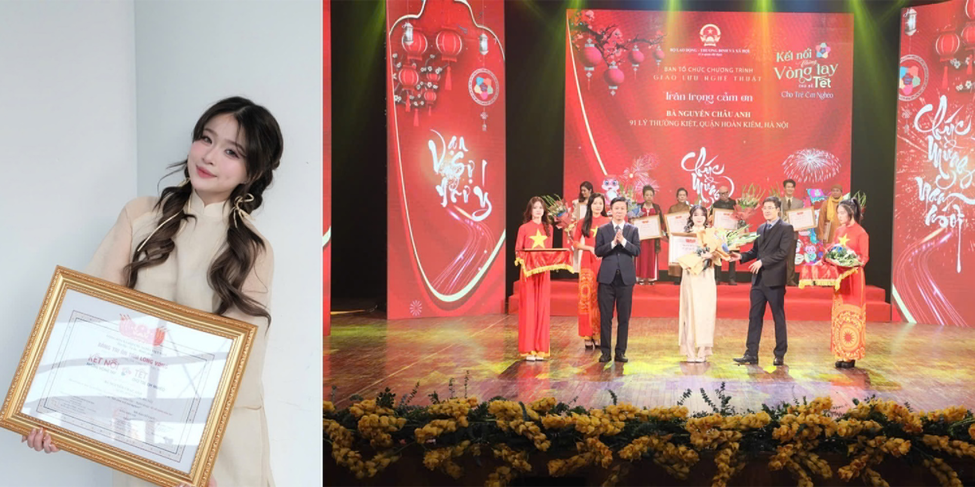 Nguyễn Châu Anh (Chao) được trao tặng Bảng tri ân “Tấm lòng vàng” trong Chương trình Kết nối những vòng tay, chủ đề “Tết cho trẻ em nghèo” do Tạp chí Lao động và Xã hội tổ chức vào đầu năm 2025