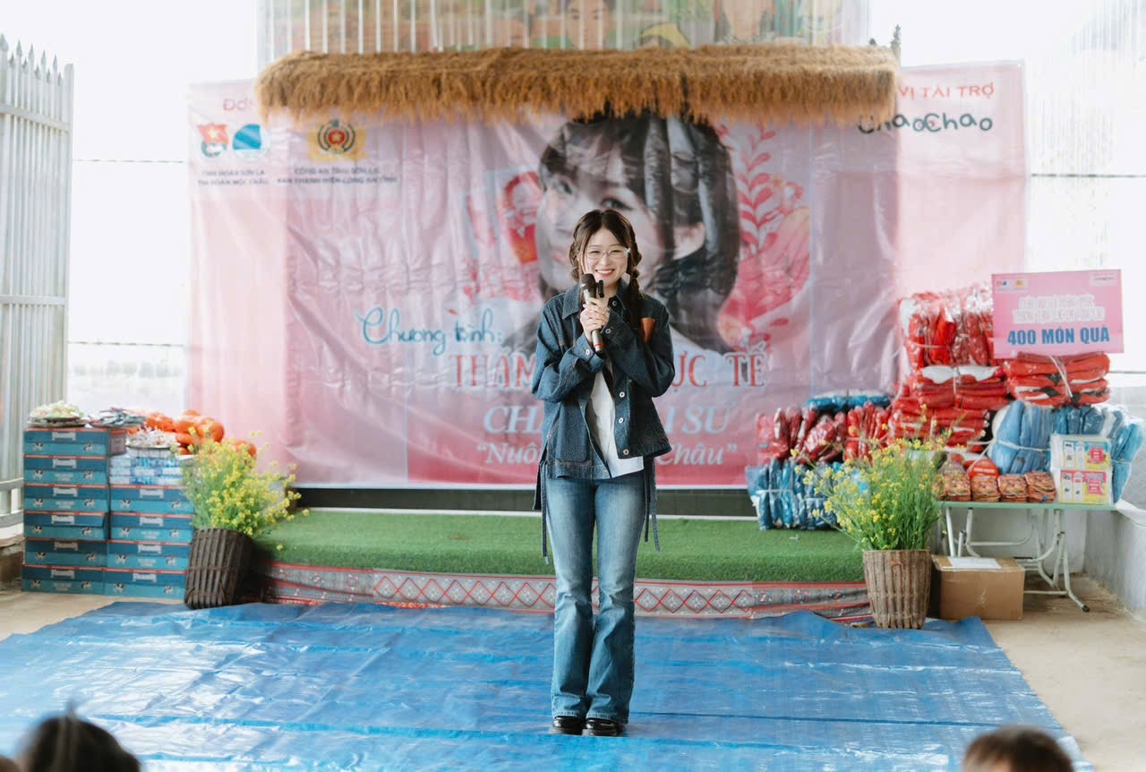 Nguyễn Châu Anh (Chao) trong chương trình “Nuôi em Mộc Châu” - một trong những dự án thiện nguyện cô luôn dành nhiều tâm huyết trong suốt những năm qua