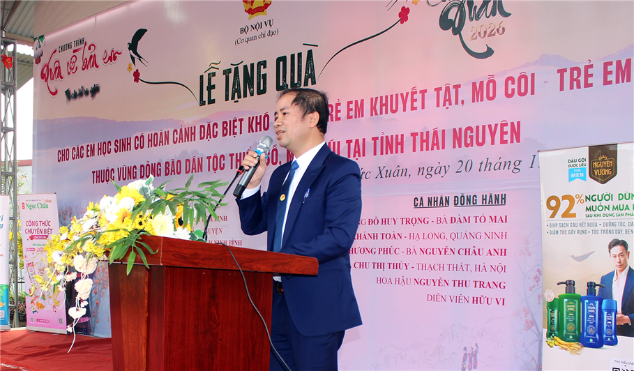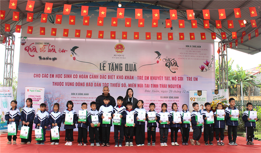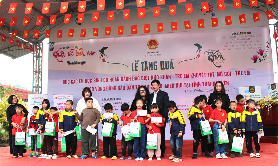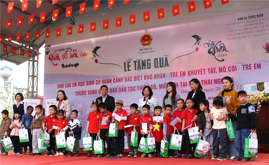 Trong không khí hân hoan chào đón năm mới 2026, hành trình của lòng nhân ái và sự sẻ chia lại tiếp nối qua Chương trình “Xuân về bản em” với chủ đề “Tết cho trẻ em nghèo”. Vượt qua giá lạnh của mùa đông vùng cao, chương trình đã mang hơi ấm của tình người đến với các em nhỏ có hoàn cảnh đặc biệt tại tỉnh Thái Nguyên, thắp lên ngọn lửa hy vọng về một năm mới đủ đầy và một tương lai tươi sáng hơn.