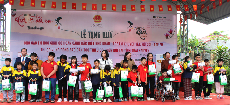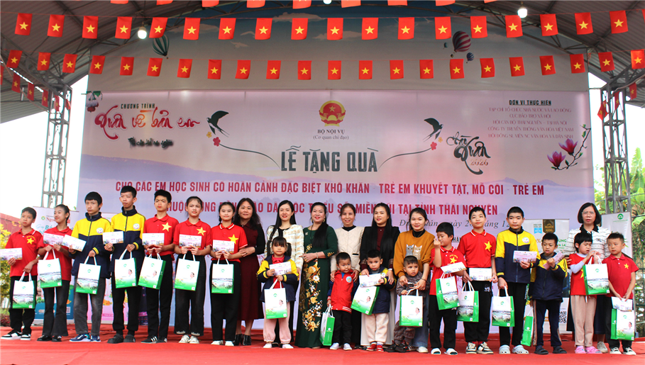 Đây là hoạt động nằm trong khuôn khổ Chương trình thường niên “Xuân về bản em”, chủ đề “Tết cho trẻ em nghèo” do Tạp chí Tổ chức Nhà nước và Lao động (Bộ Nội vụ) chủ trì, phối hợp với Cục Bảo trợ xã hội (Bộ Y tế), Hội cán bộ Thái Nguyên tại Hà Nội, Công ty Cổ phần Phát triển Truyền thông Văn hóa Việt Nam cùng nhiều cơ quan, doanh nghiệp và các nhà hảo tâm trên cả nước chung tay thực hiện.