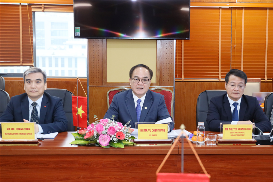 “Trong tổng thể quan hệ song phương đó, hợp tác về lĩnh vực lao động, việc làm luôn giữ vai trò quan trọng. Trên nền tảng tin cậy, tôn trọng lẫn nhau và chia sẻ các giá trị chung, hai bên đã cùng thúc đẩy nhiều hoạt động hợp tác thiết thực, đóng góp tích cực cho phát triển kinh tế - xã hội và ổn định thị trường lao động của mỗi nước” - Thứ trưởng Vũ Chiến Thắng phát biểu.