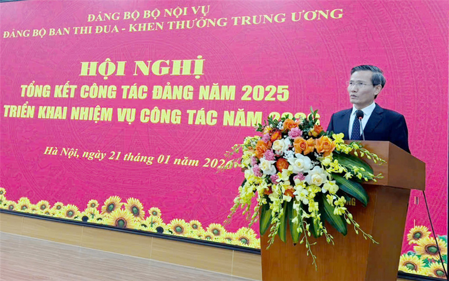 Tại Hội nghị, thay mặt Ban Thường vụ Đảng ủy Bộ Nội vụ, đồng chí Cao Huy, Thứ trưởng Bộ Nội vụ ghi nhận, đánh giá cao và biểu dương những kết quả quan trọng, toàn diện mà Đảng bộ Ban Thi đua - Khen thưởng Trung ương đạt được trong năm 2025.