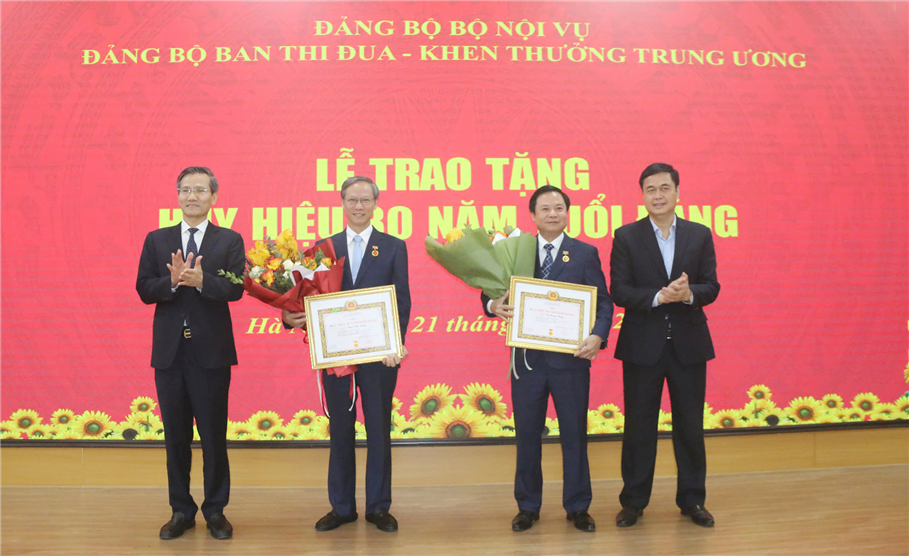 Cũng tại Hội nghị, Đảng bộ Ban Thi đua - Khen thưởng Trung ương đã công bố Quyết định của Đảng ủy Chính phủ tặng Huy hiệu 30 năm tuổi Đảng cho đồng chí Phan Văn Hùng, Phó Trưởng ban Ban Thi đua - Khen thưởng Trung ương và đồng chí Đỗ Trọng Hùng, Trưởng phòng Phòng Tổ chức cán bộ, Ban Thi đua - Khen thưởng Trung ương; Quyết định của Bộ trưởng Bộ Nội vụ về việc tặng Bằng khen cho Đảng bộ Ban Thi đua - Khen thưởng Trung ương đã có thành tích xuất sắc trong công tác tổ chức Đại hội đại biểu Đảng bộ Bộ Nội vụ nhiệm kỳ 2025 - 2030./.