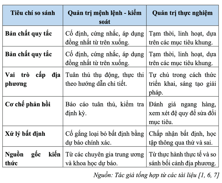 Bảng so sánh quản trị mệnh lệnh và quản trị thực nghiệm