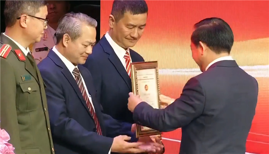 Đồng chí Trịnh Văn Quyết, Ủy viên Bộ Chính trị, Bí thư Trung ương Đảng, Trưởng ban Ban Tuyên giáo và Dân vận Trung ương trao giải C Giải Búa liềm vàng lần thứ X cho nhà báo Lê Doãn Sơn, Tạp chí Tổ chức nhà nước và Lao động.