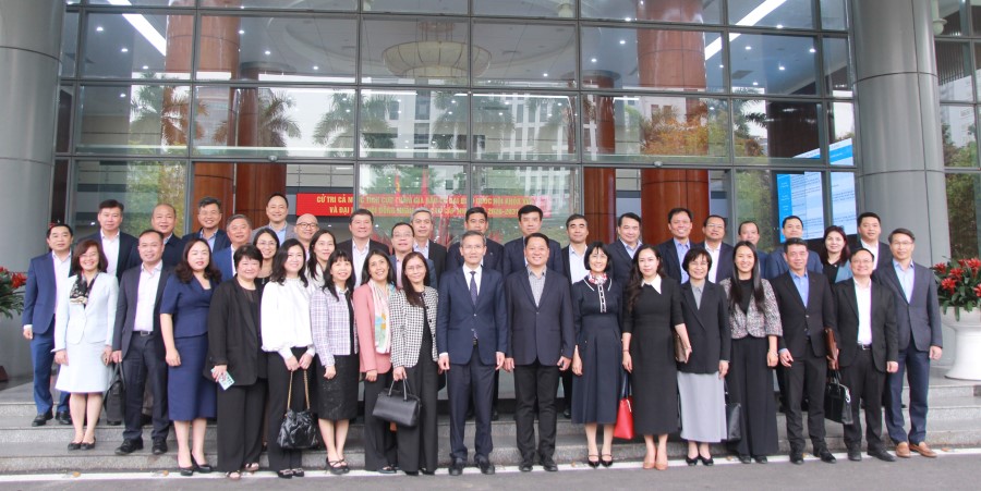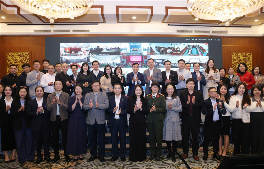 Các đại biểu tại điểm cầu Hà Nội chụp ảnh chung.
