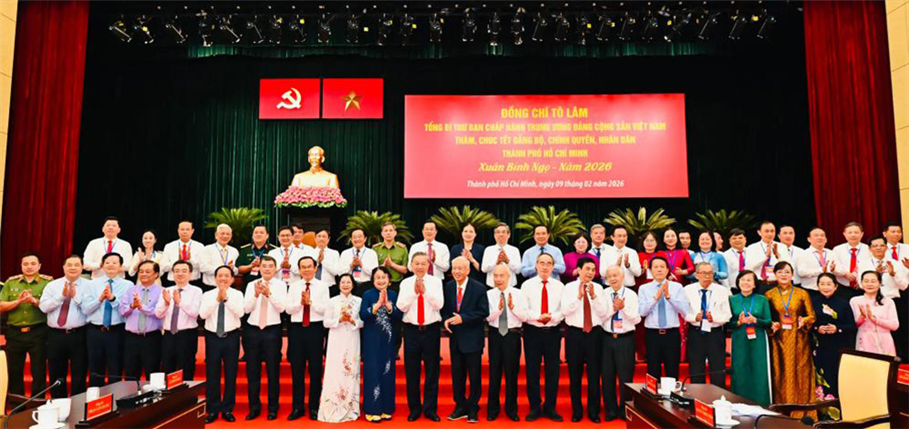 Tổng Bí thư Tô Lâm và đoàn công tác của Trung ương đã đến thăm, chúc Tết Đảng bộ, Chính quyền và Nhân dân TP.Hồ Chí Minh nhân dịp Tết Bính Ngọ 2026. Ảnh: VIỆT DŨNG