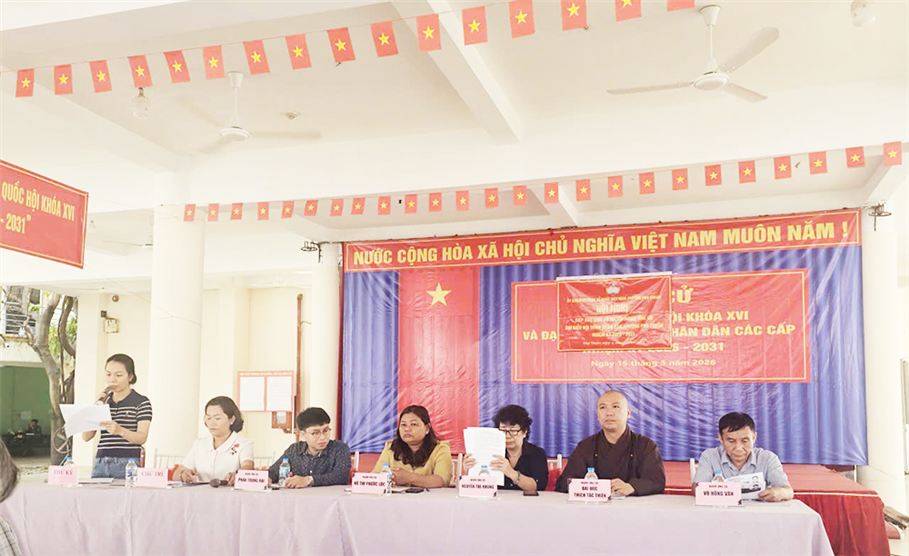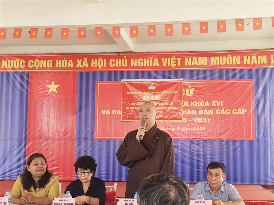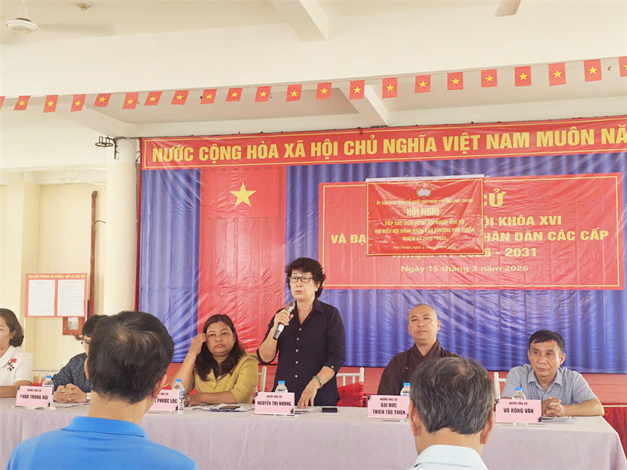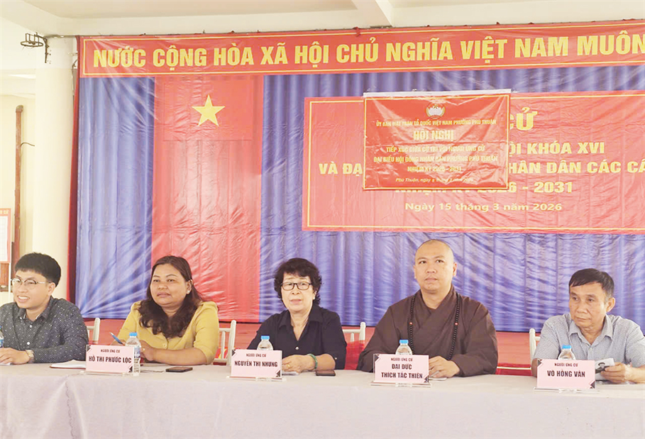 Tham dự hội nghị có gần 100 cử tri đại diện cho các khu phố 27, 28, 29, 30 và 31 trên địa bàn phường. Tại đơn vị bầu cử số 08 có 5 ứng cử viên đại biểu HĐND phường Phú Thuận khóa I, nhiệm kỳ 2026 - 2031 gồm: bà Hồ Thị Phước Lộc, Ủy viên Ban Thường vụ, Phó Chủ tịch HĐND phường; bà Nguyễn Thị Phương Nhung, Phó Bí thư Chi bộ, Trưởng khu phố 29; ông Nguyễn Hữu Minh Thông (Đại đức Thích Tắc Thiện), Ủy viên Ủy ban MTTQ Việt Nam phường, trụ trì chùa Quang Minh; ông Võ Hồng Vân, Phó Chủ tịch Ủy ban MTTQ Việt Nam phường, Chủ tịch Hội Cựu chiến binh phường; và ông Phan Trung Hải, Ủy viên Ban Chấp hành Đoàn phường, Bí thư Chi đoàn, giáo viên Trung tâm Giáo dục nghề nghiệp - Giáo dục thường xuyên Lê Thị Hồng Gấm.