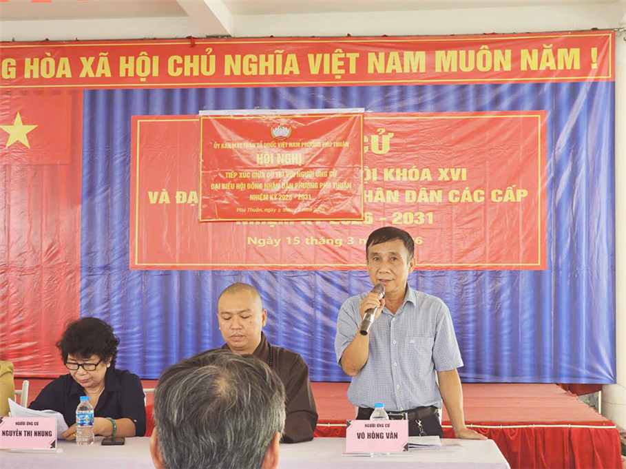 Tại hội nghị, đại diện Ủy ban MTTQ Việt Nam phường Phú Thuận đã trình bày tóm tắt tiểu sử của các ứng cử viên, giúp cử tri nắm bắt thông tin về quá trình công tác, năng lực và thành tích của từng người. Sau đó, các ứng cử viên lần lượt trình bày dự kiến chương trình hành động nếu được cử tri tín nhiệm bầu làm đại biểu HĐND phường nhiệm kỳ 2026 - 2031.