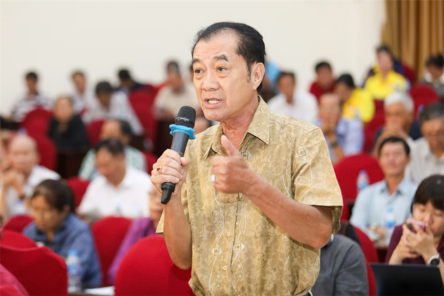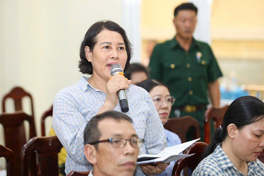 Cử tri xã Tân Vĩnh Lộc phát biểu tại buổi tiếp xúc với các ứng cử viên đại biểu Quốc hội và HĐND Thành phố vừa được Ủy ban MTTQ Việt Nam xã Vĩnh Lộc tổ chức.